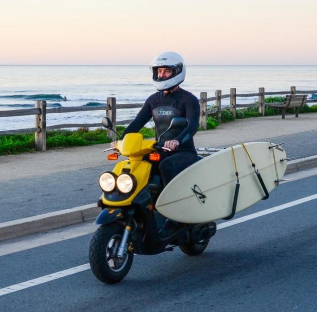 We sell so many surf board racks this time of year and perhaps you hadn’t considered this yet? Parking at the beaches can be an issue during peak periods. Grab a surf board rack and have it installed by our techs or install it on your rear rack yourself and you can race past the traffic, grab the perfect sneaky parking spot and get that extra surf in each day! We have a couple of different options so have a look and we’ll put one on your scooter too.