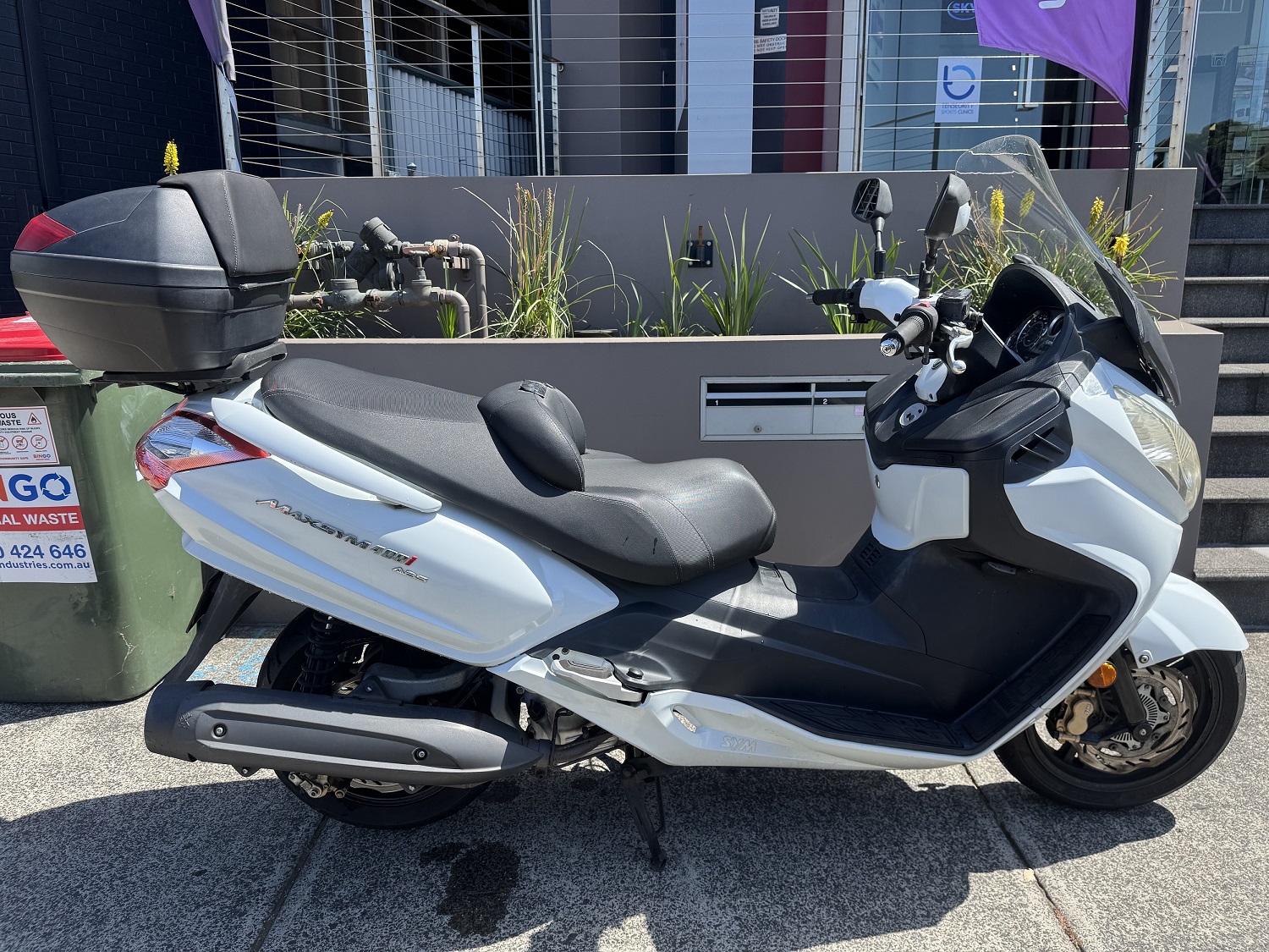 Well-maintained and reliable 2014 SYM Maxsym 400i scooter, perfect for city commuting and longer rides. Powered by a smooth 399 cc liquid-cooled engine with automatic transmission, offering effortless acceleration and strong mid-range performance. Features include comfortable seating for two, spacious under-seat storage, dual disc brakes with ABS (if equipped), and a stylish, sporty design. Great balance of power, practicality, and fuel efficiency — a solid choice for daily riding or weekend adventures.