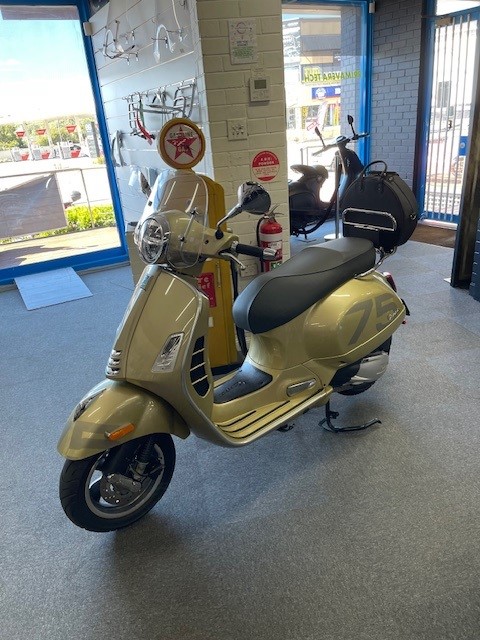 The Vespa GTS 75th Anniversary model is a limited-edition scooter from 2021, featuring exclusive styling elements, modern technology, and a unique welcome kit for owners. It was a special release to mark the company’s 75th year and is now a sought-after collector’s item.