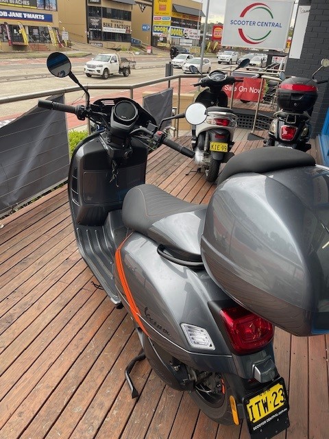 The 2023 Vespa GTV 300 is a stylish scooter with a modern take on classic Vespa design, featuring a 278cc HPE engine, automatic transmission, and a unique low-mounted headlight. It has exposed handlebars, a sportier seat, and separate instrument panel, . Overall, it is a capable and fun-to-ride scooter, especially for those who value a retro look.